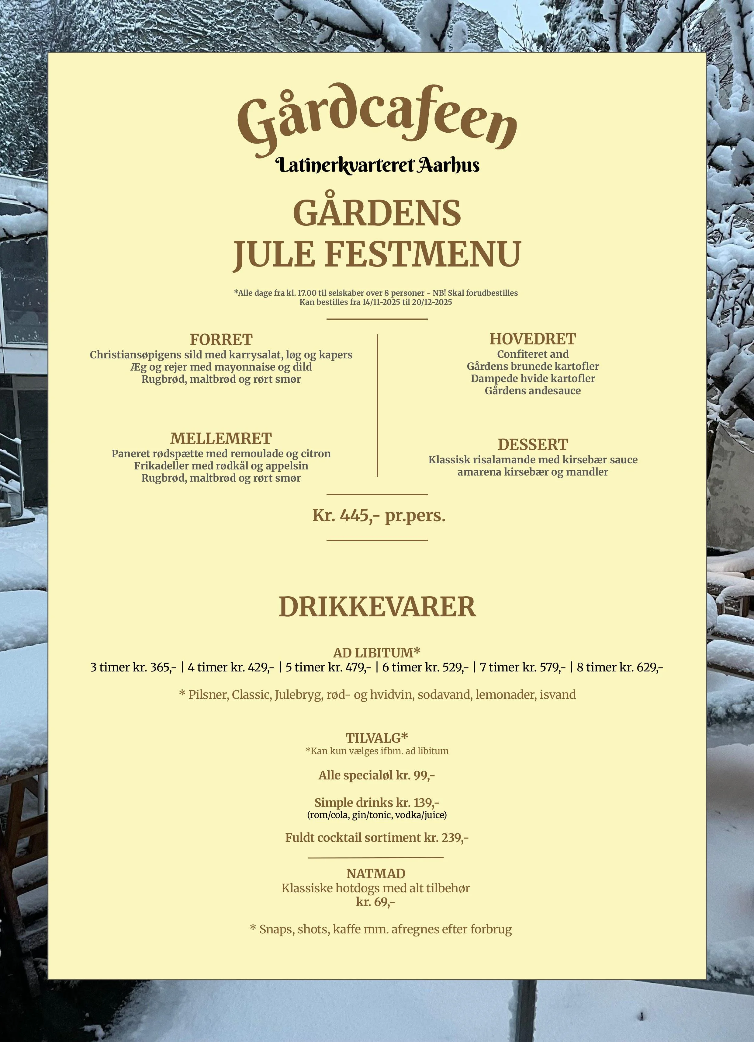 Køkkenet har samlet de traditionelle danske juleretter og er klar til at servere dem for dig i Gårdens Juleanretning.